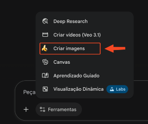 No menu inicial, selecione “Criar imagens”.
