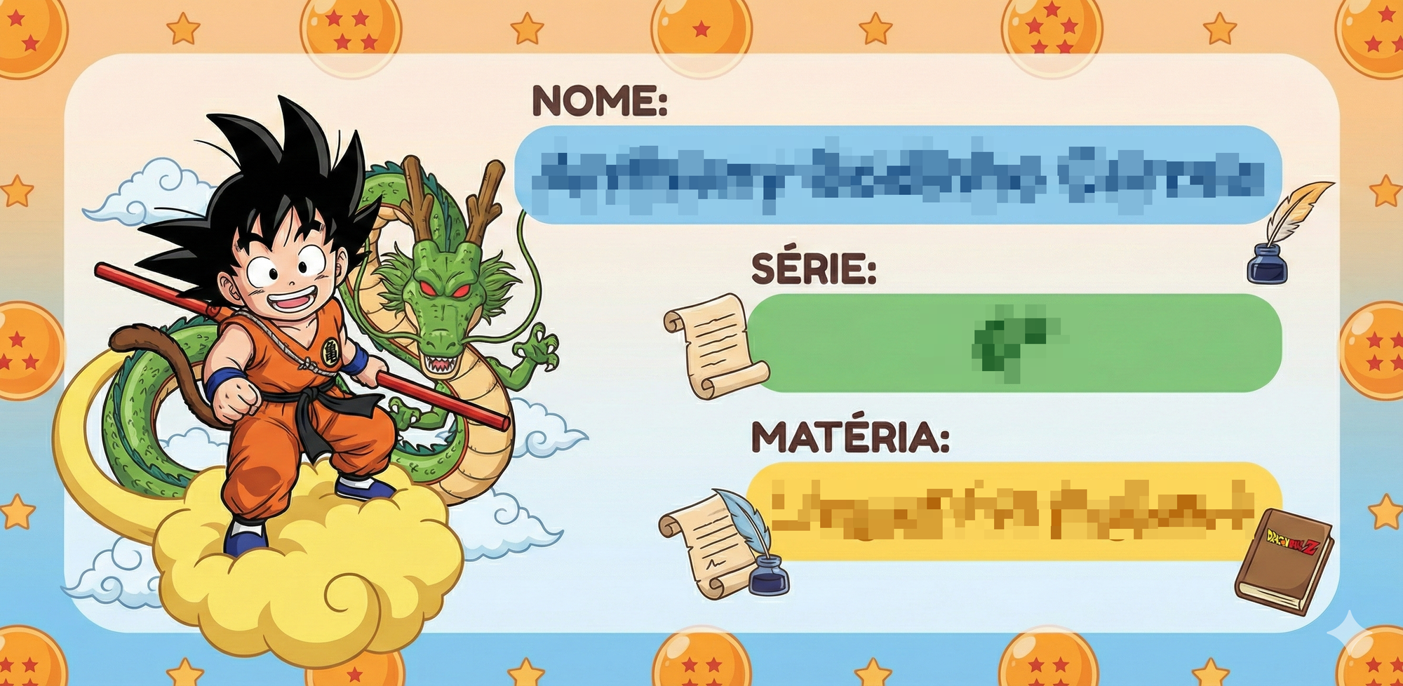 Crie uma ilustração para etiqueta escolar infantil, já contendo texto legível na imagem.
